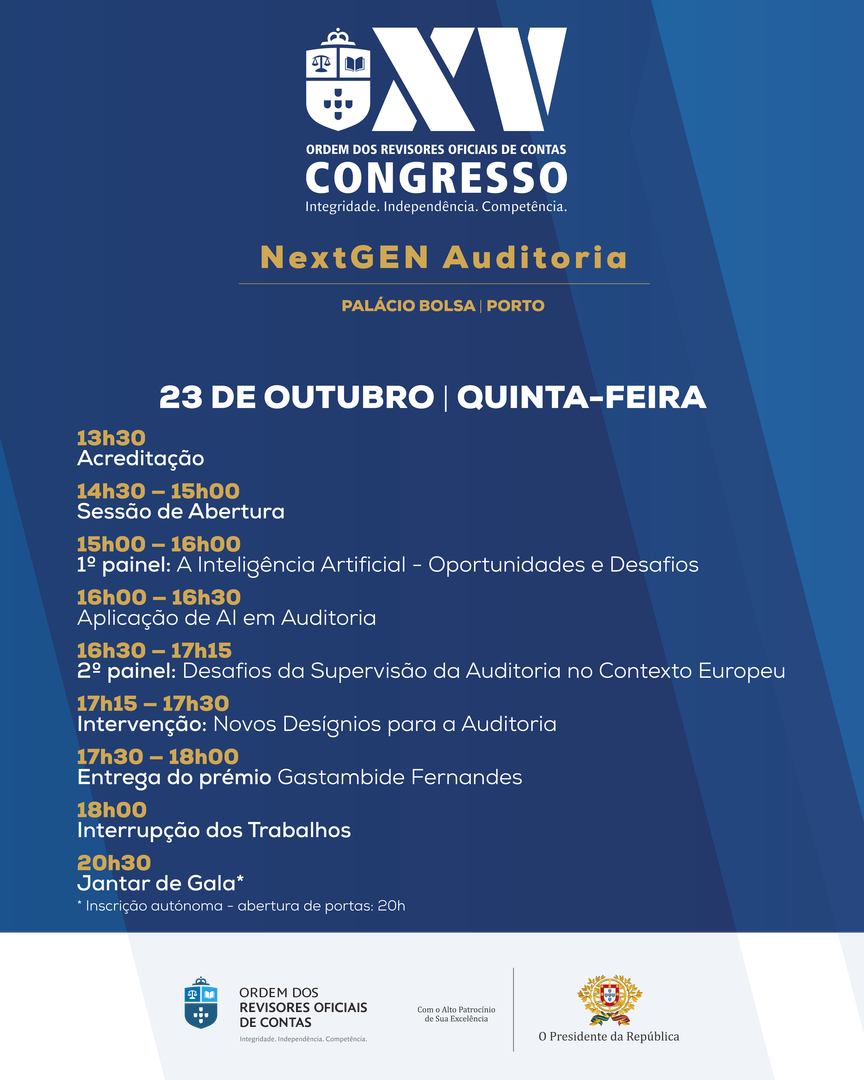 Notícia26 de Junho, 2025XV Congresso OROC Nos dias 23 e 24 de outubro, o Palácio da Bolsa, no Porto,…Ler mais